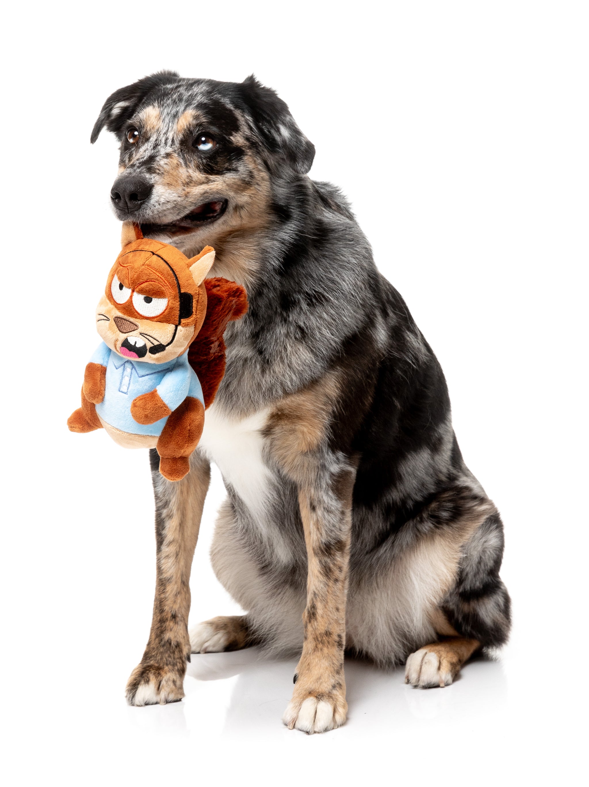 And let’s be honest, we’ve ALL taken a call from Tom at least once in our lives. That face? Says “I HATE THIS JOB.” But the headset’s on. The polo’s tucked. And nothing, not even your dog can stop him from calling. AGAIN. Dressed in his baby blue business-casual best, headset locked in, and energy set to “aggressively helpful,” Tom is the plush toy who never takes a hint. You can ignore him. You can toss him. But he’ll be back, probably during dinner. Squeaky? Of course. Annoying? In the best way. Polite but persistent? ALWAYS. Perfect for pups who love a toy with too much energy, zero boundaries, and endless chew appeal. Press 1 to squeak. Press 2 to hang up. Press 3 to admit Tom’s kinda your favourite.