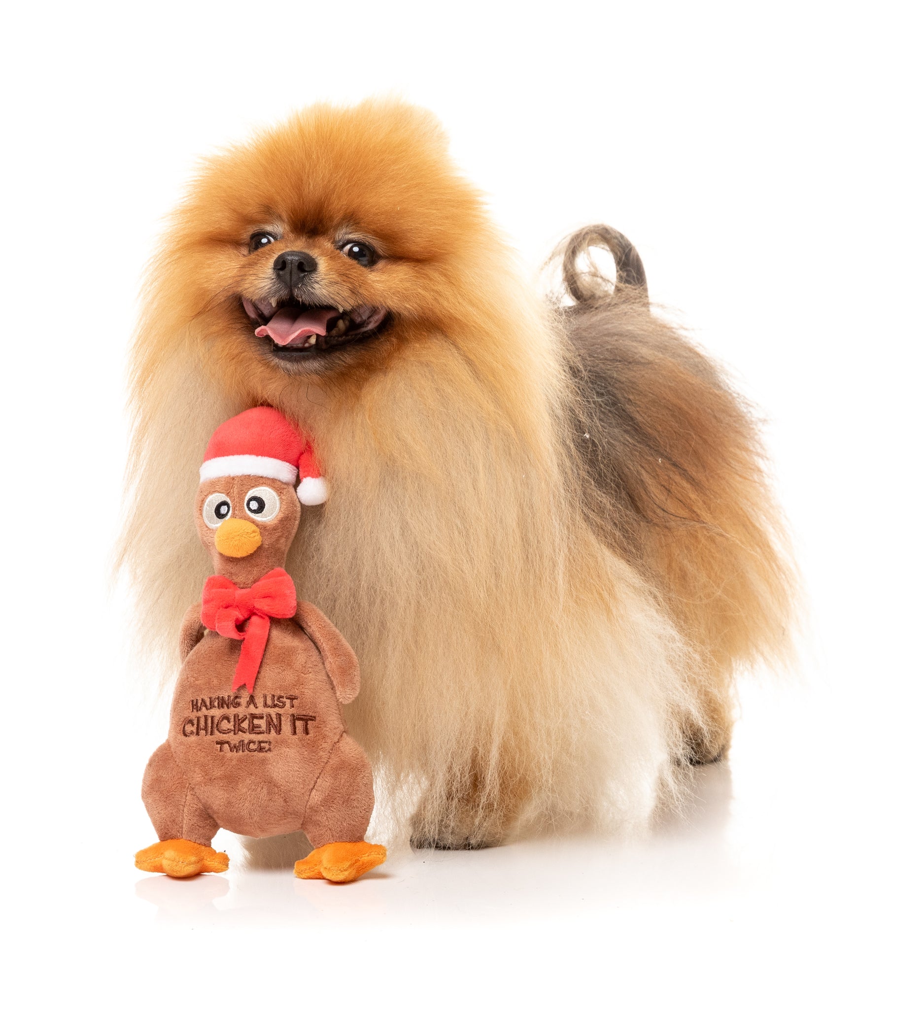 Santa’s got his list, and this chook is double-checking it—because only the best pups get to chomp on this holiday treat! Chicken It Twice Chook is dressed in full festive flair, complete with a Santa hat, a fancy red bow, and a squeaker that’ll have your pup clucking with excitement.